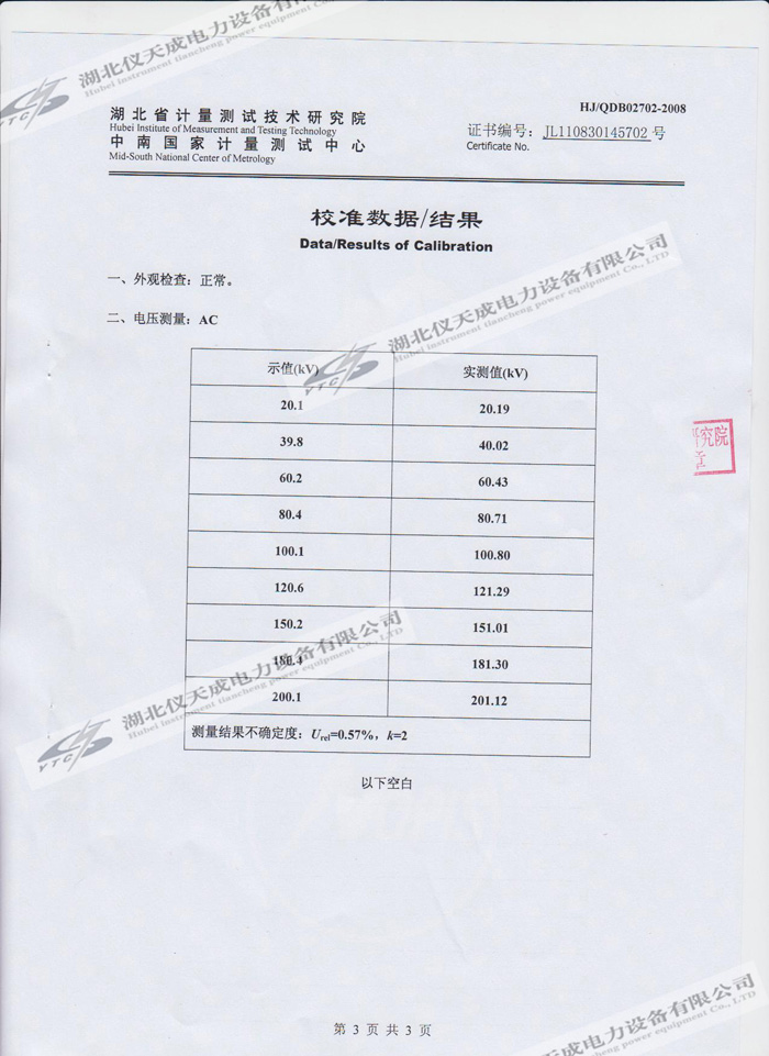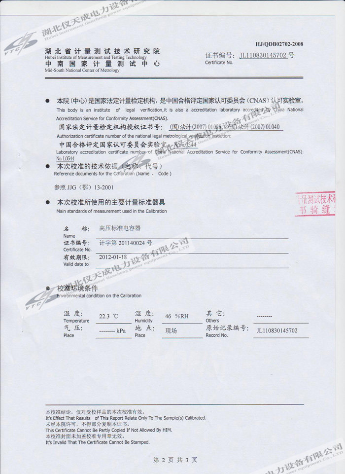 轉(zhuǎn)載:"YTC850-810kVA/270kV/45kV變頻串聯(lián)諧振試驗(yàn)裝置的資質(zhì)證書" 請(qǐng)注明來源于儀天成電力。 更多技術(shù)問題請(qǐng)致電儀天成電力客戶服務(wù):027-87876585,技術(shù)部專線:027-87876585,在線客服: