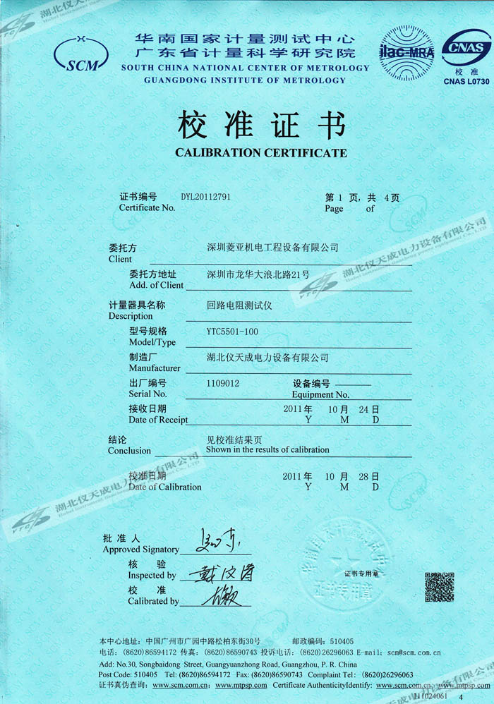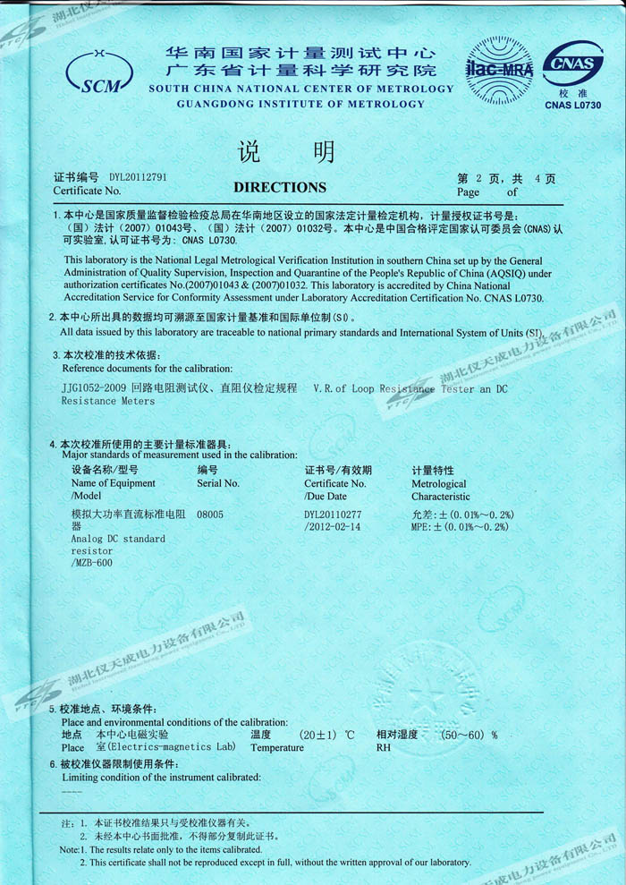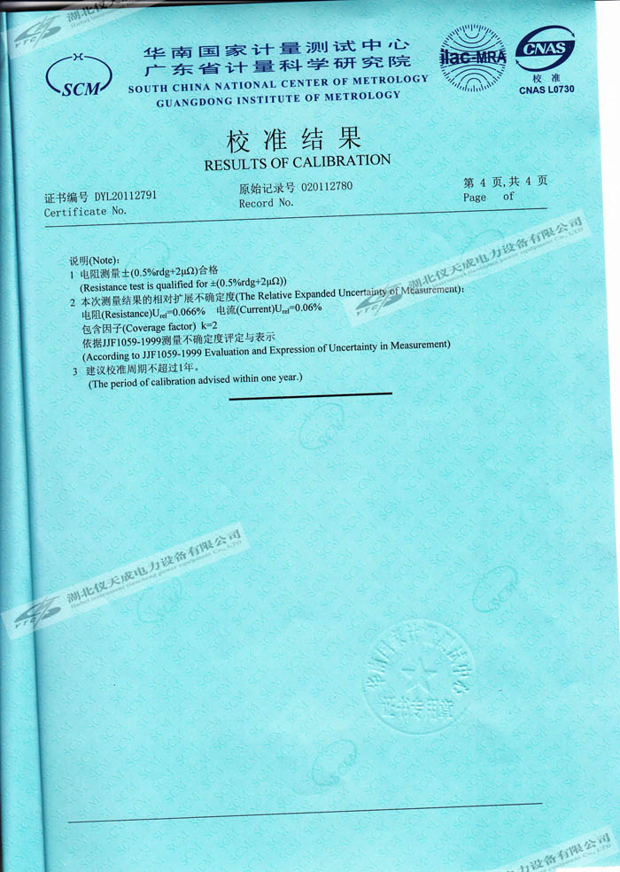 轉載:"YTC5501-100A 回路電阻測試儀的資質證書" 請注明來源于儀天成電力。 更多技術問題請致電儀天成電力客戶服務:027-87876585,技術部專線:027-87876585,在線客服:719388481