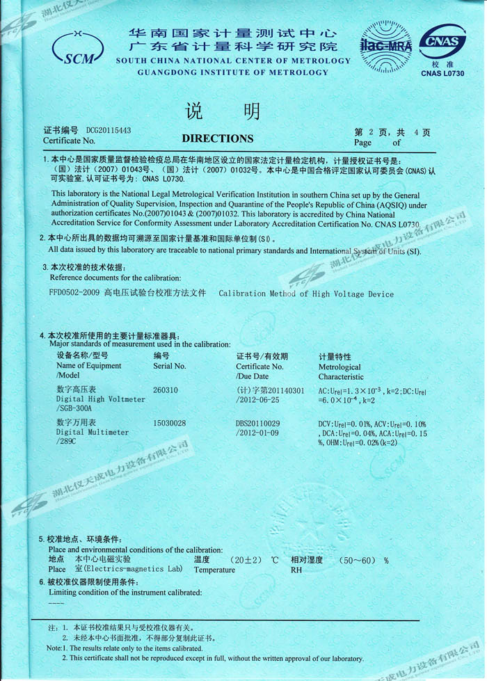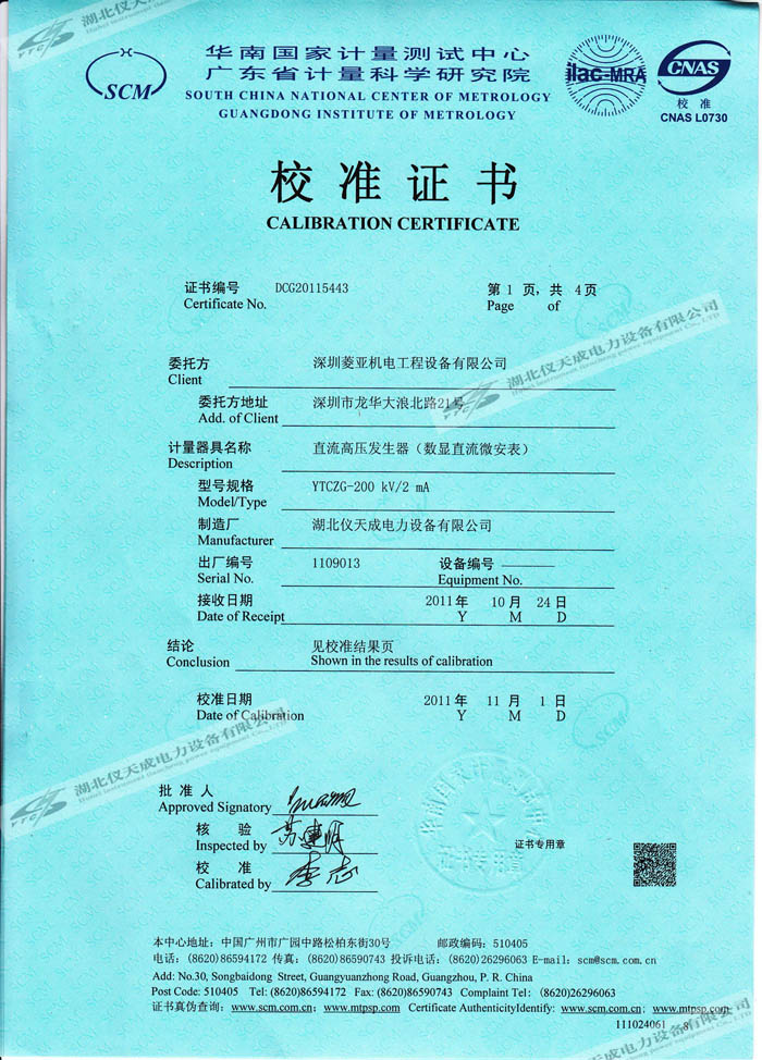 轉(zhuǎn)載:"YTCZG-200kV2mA直流高壓發(fā)生器的資質(zhì)證書(shū)" 請(qǐng)注明來(lái)源于儀天成電力。 更多技術(shù)問(wèn)題請(qǐng)致電儀天成電力客戶服務(wù):027-87876585,技術(shù)部專線:027-87876585,在線客服:719388481